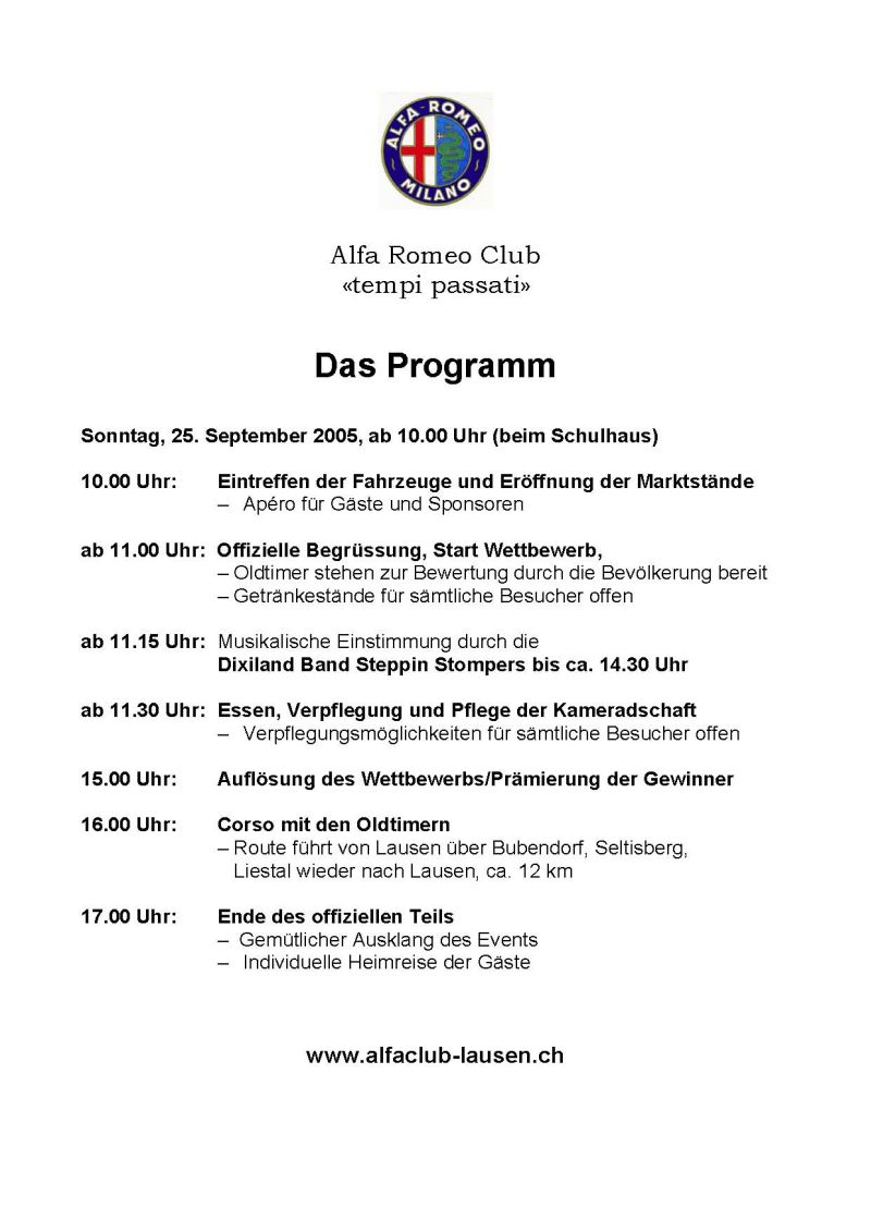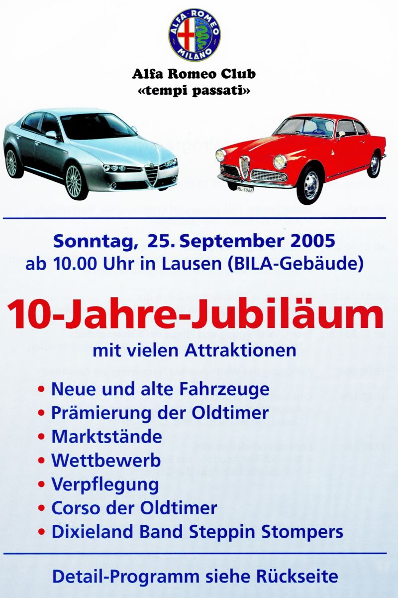 Jubiläum Alfa Romeo Club "tempi passati" in Lausen (CH) - Flyer front back |